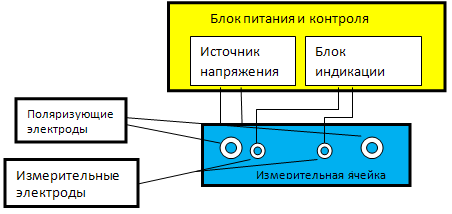 Поляризационные электроды «защищают» измерительные электроды, с которых снимается напряжение на блок индикации.