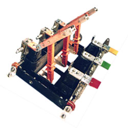 Заземлители состоят из двух подвижных контактов с ламелями. Эти контакты при двух и трехполюсной установке устанавливаются на общей медной шине (шина в поставку не входит), закрепленной на стальных стойках, приваренных к валу. При включении заземлители входят ламелями на боковые поверхности неподвижных контактов.