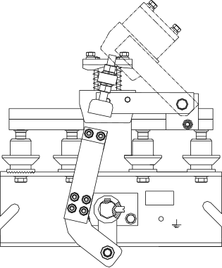 Конструктивно разъединитель выполнен в виде блока, управляемого одним приводом. Блок состоит из рамы с неподвижными изоляторами, токоведущей системы, состоящей из неподвижных и подвижных клиновых пластинчатых контактов. Используемый привод - электродвигательный типа ПД14 -10УХП1 или ручной привод ПЧ-50МУЗ.